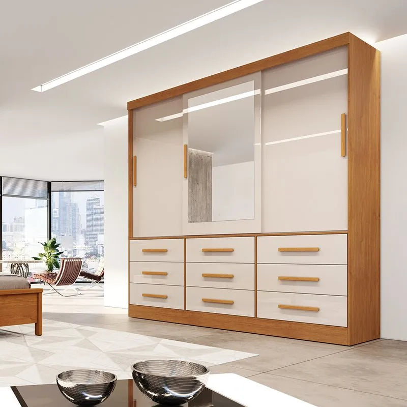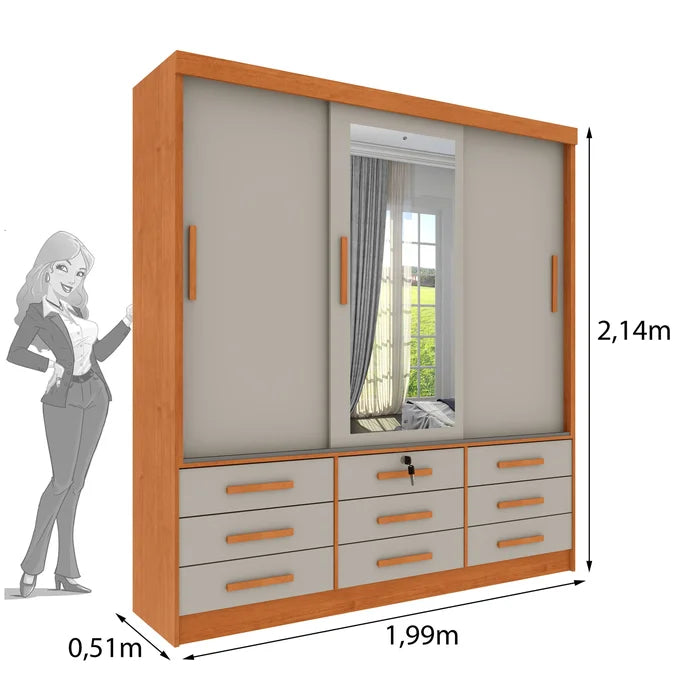 O Guarda-Roupa Londres foi pensado pra deixar seu ambiente organizado e ainda mais bonito. A começar de sua estrutura feita em 100% MDF, possui 9 gavetas espaçosas com corrediças telescópicas. Conta também com espelho, cabideiros e nichos com espaços bem distribuídos.